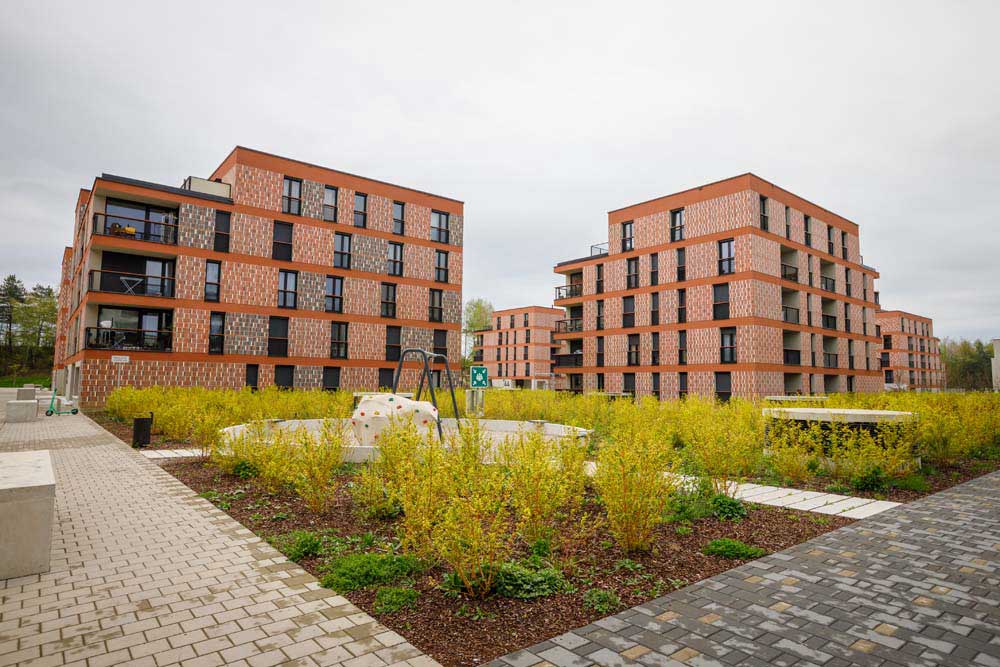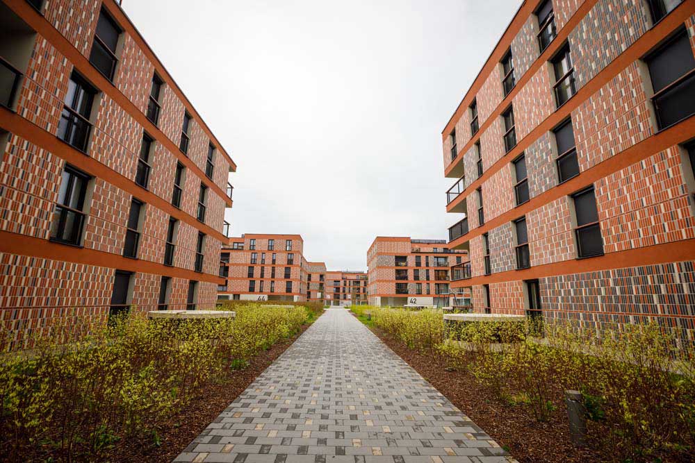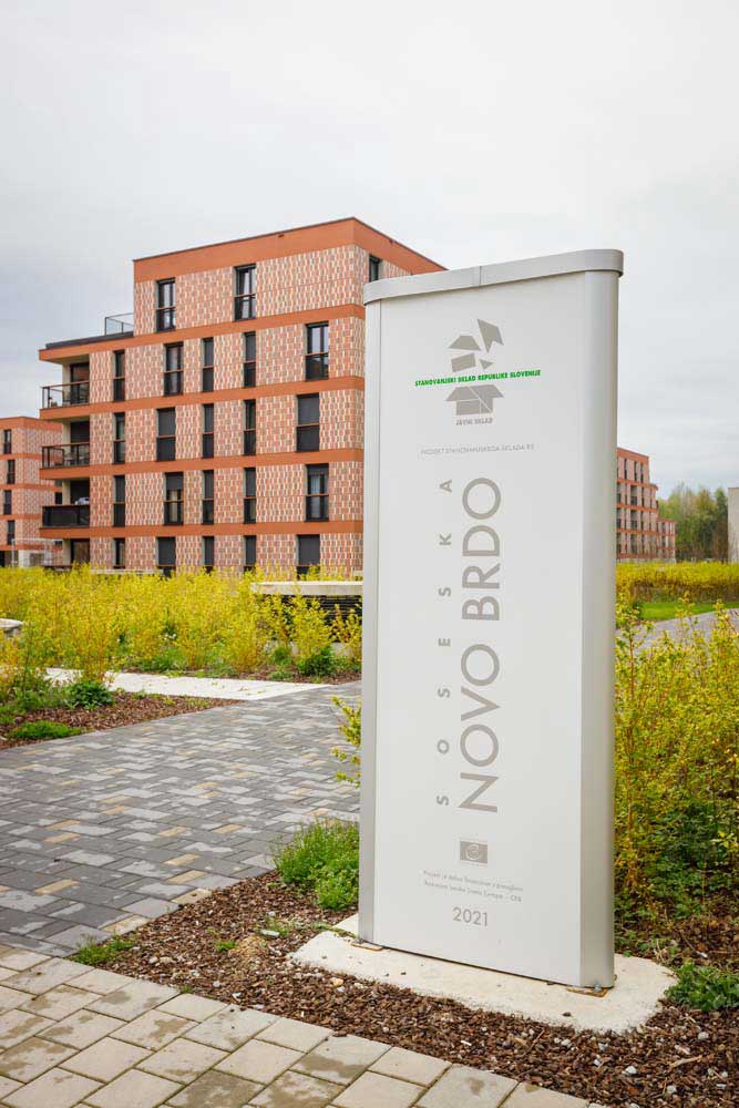 Stanovanjska soseska Novo Brdo v Ljubljani. Vgrajena so vrata in podboji po RAL-U 9016.