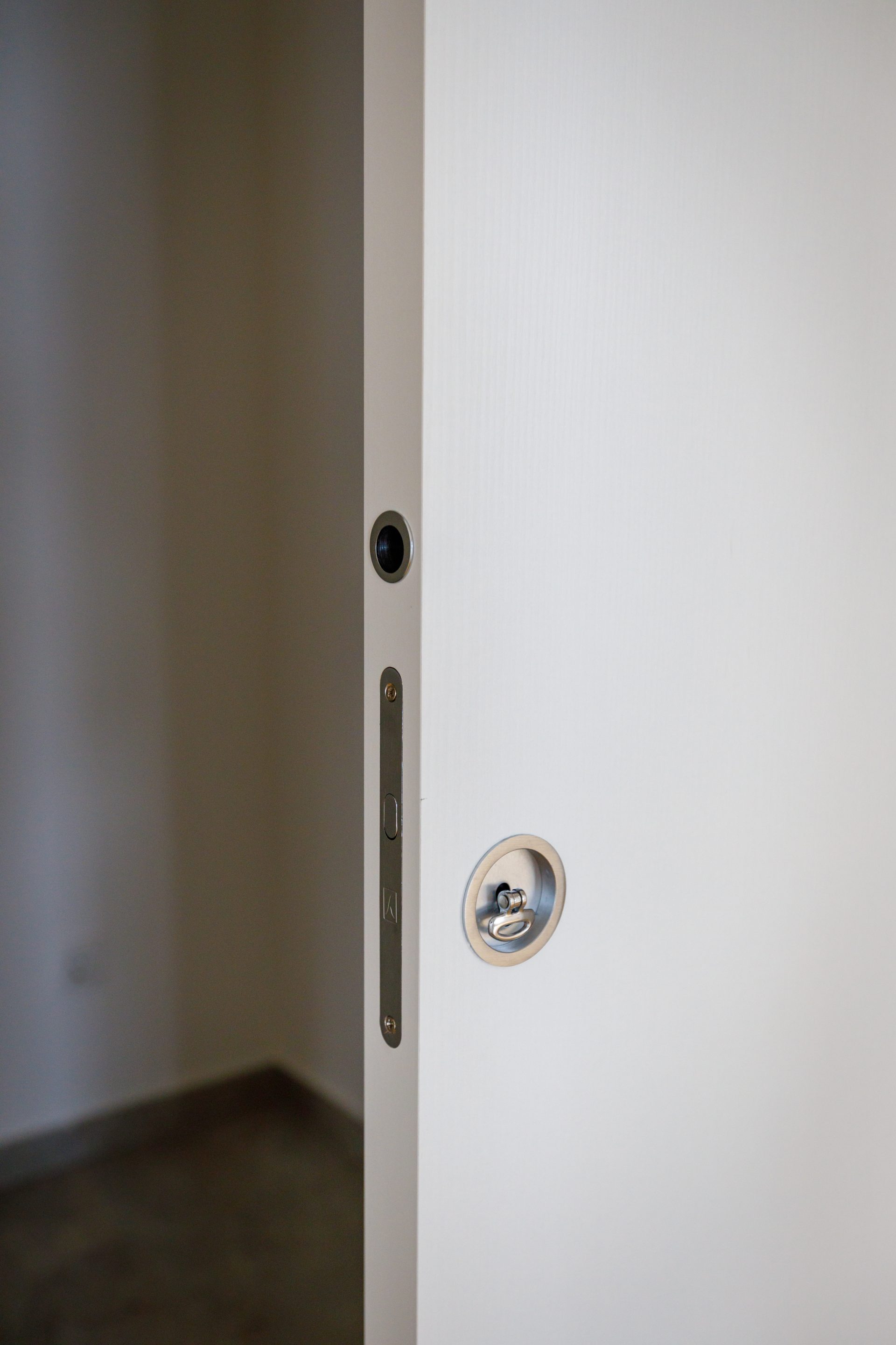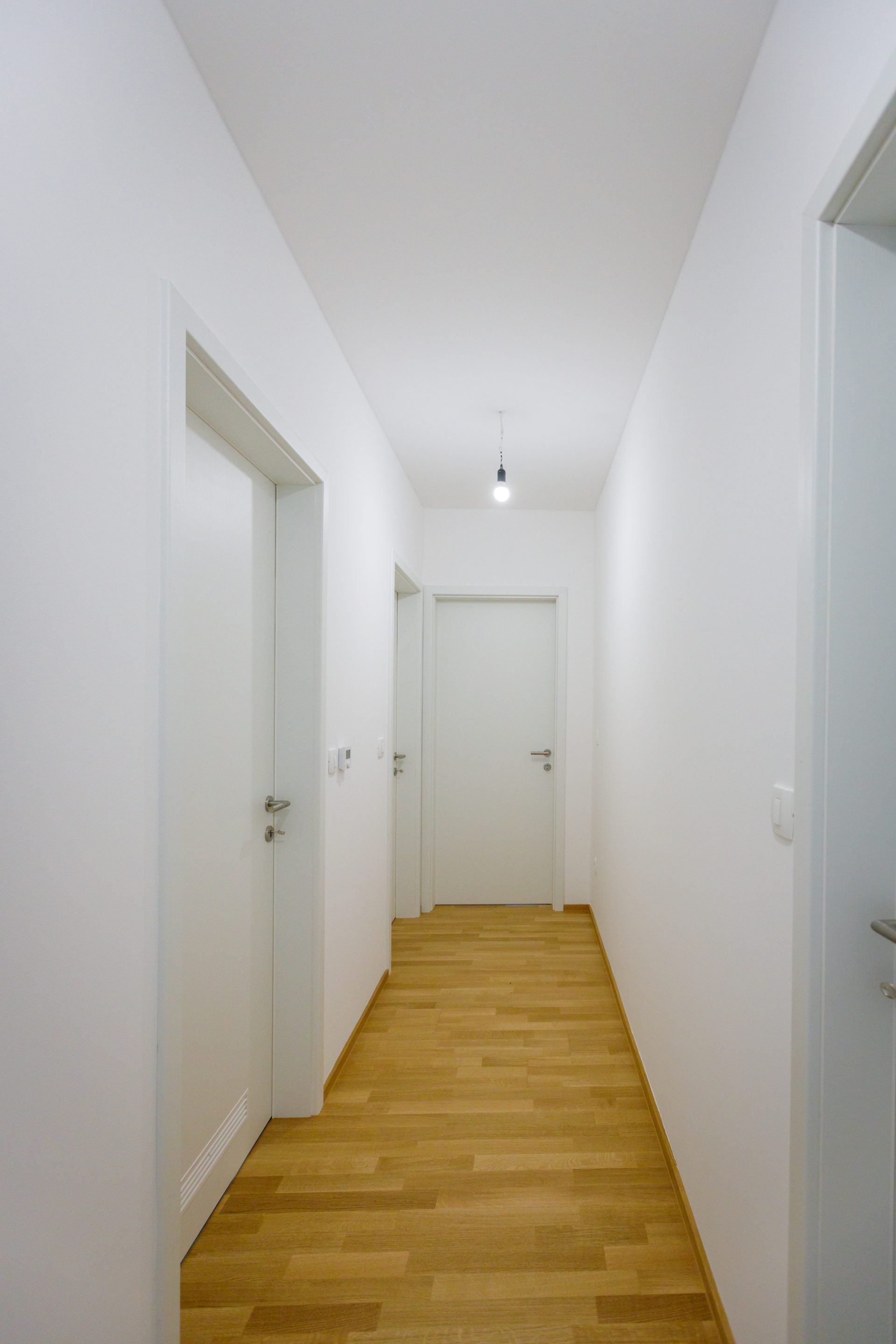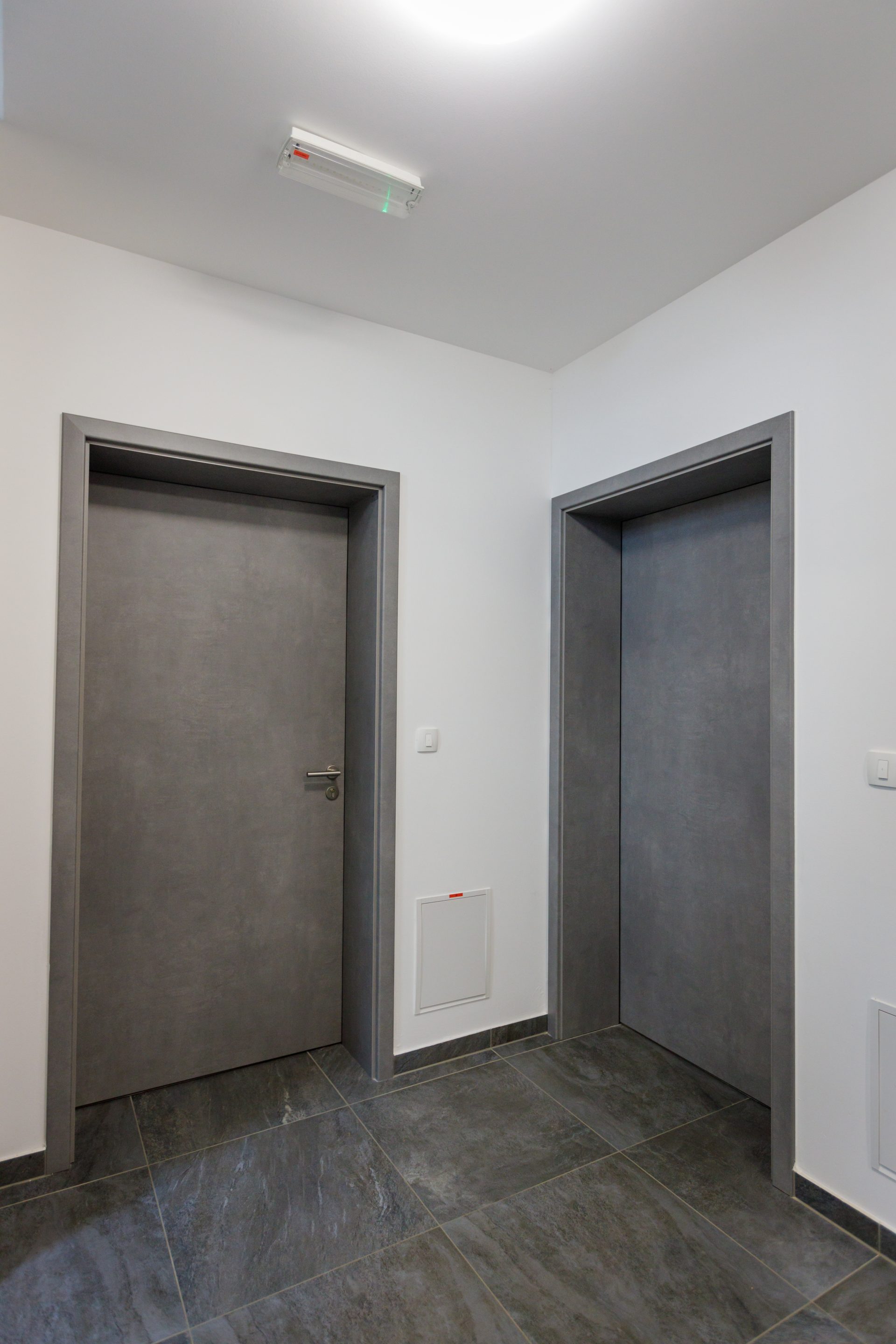 Za notranja vrata smo izbrali CPL laminat v elegantni beli barvi, vhodna vrata pa navdušujejo s kombinacijo varnosti, udobja in estetike in sicer v CPL BETON laminatu.