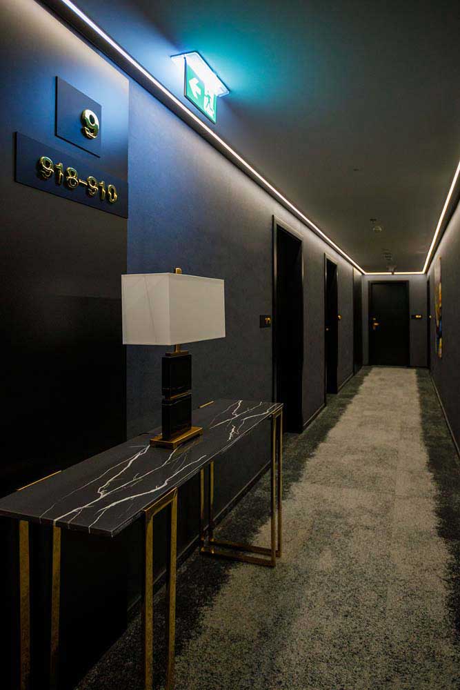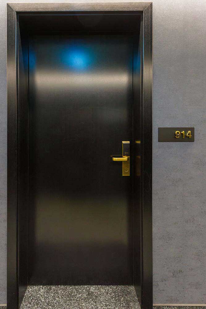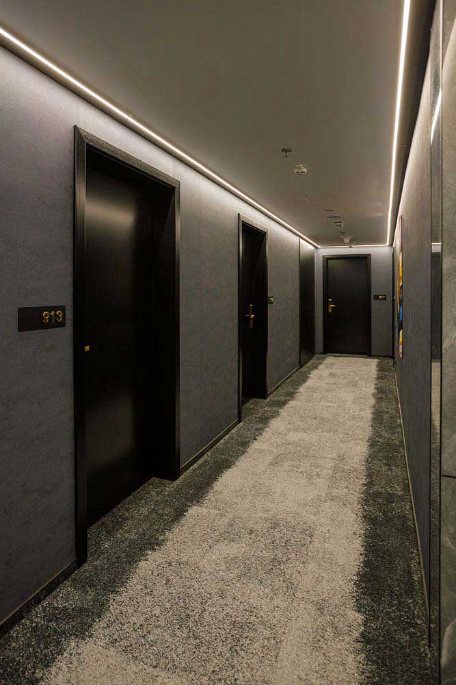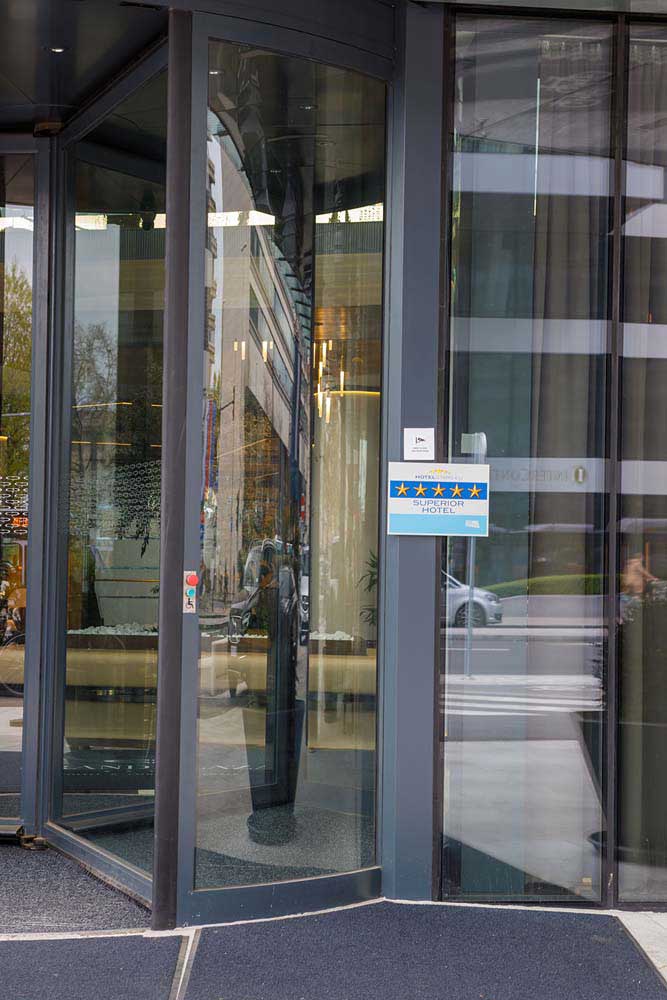 GRAND HOTEL PLAZA se nahaja na vrhunski lokaciji v središču mesta Ljubljana. Vgrajena so vrata in podboji FURNIR ALPI 10,43 GABON EBONY